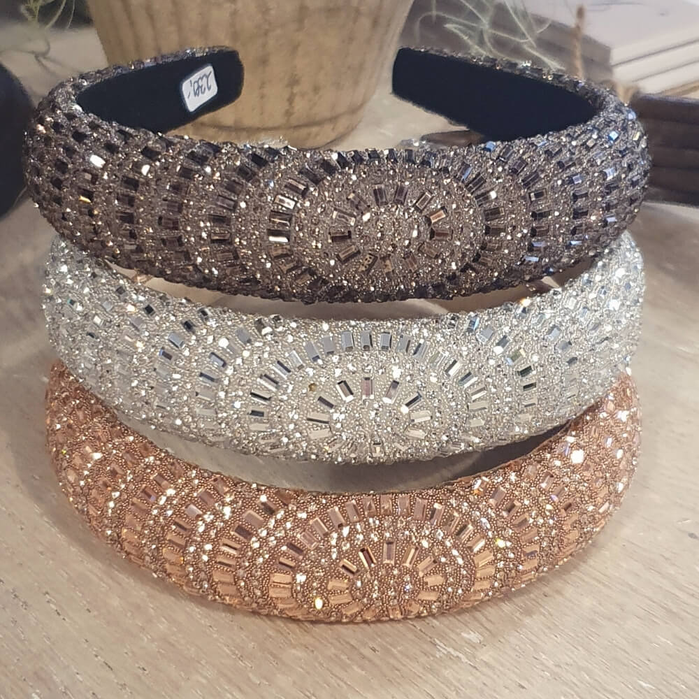 Smukke, glitrende hårbøjler med funklende rhinsten – perfekt til jul, nytår og andre festligheder. Fås i flere farver hos Aastedgaard.dk